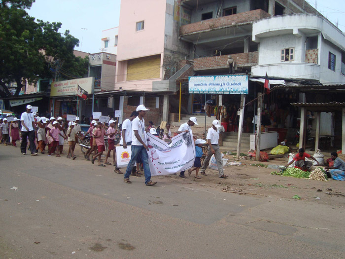 A similar walking awareness rally was conducted by Gandhi World Foundation in Gummidipoondi on 02.10.2012 to mark the occasion of Gandhi Jayanthi. The rally was flagged off by the Deputy Superintendent of Police, Tiruvallur District and many persons had participated in the rally and similar Pamphlets were distributed in Gummidipoondi.
